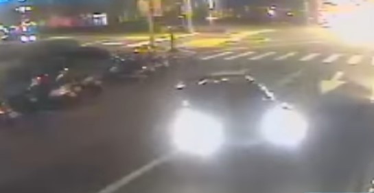 根據今天公布的客運行車記錄器影像,晚間時分,市府周邊兩輛國光客運載著乘客準備返程,突然對向轟轟的引擎聲大作,一輛車快速衝過來,還往一旁飄移,似乎失控,接著就是乘客的尖叫聲。