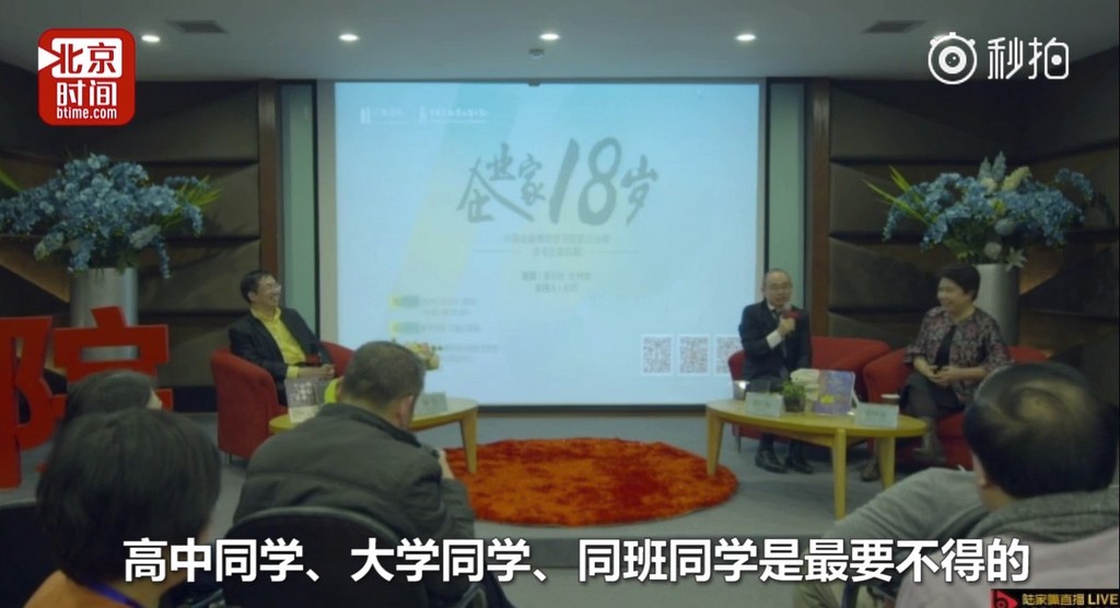 ▲陸地產大亨給創業者建議,另一半不要找同班同學。(圖/翻攝自北京時間秒拍,下同)