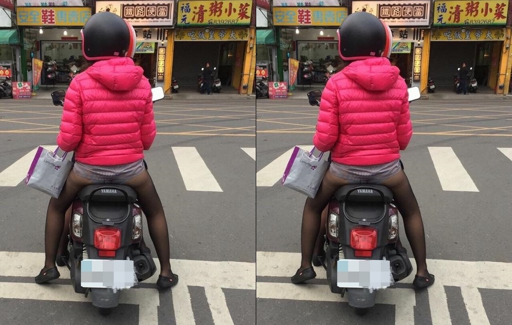 近日天氣回暖,清晨低溫介於17到20度間,中南部高溫約25到27度,是個溫暖的冬日。不過在彰化縣員林市有網友拍下趣味照片,只見一位女孩坐在機車後座,上身穿著保暖的粉色羽絨外套,下身則是極大反差,窄裙配上黑絲襪,小褲褲直接見光!