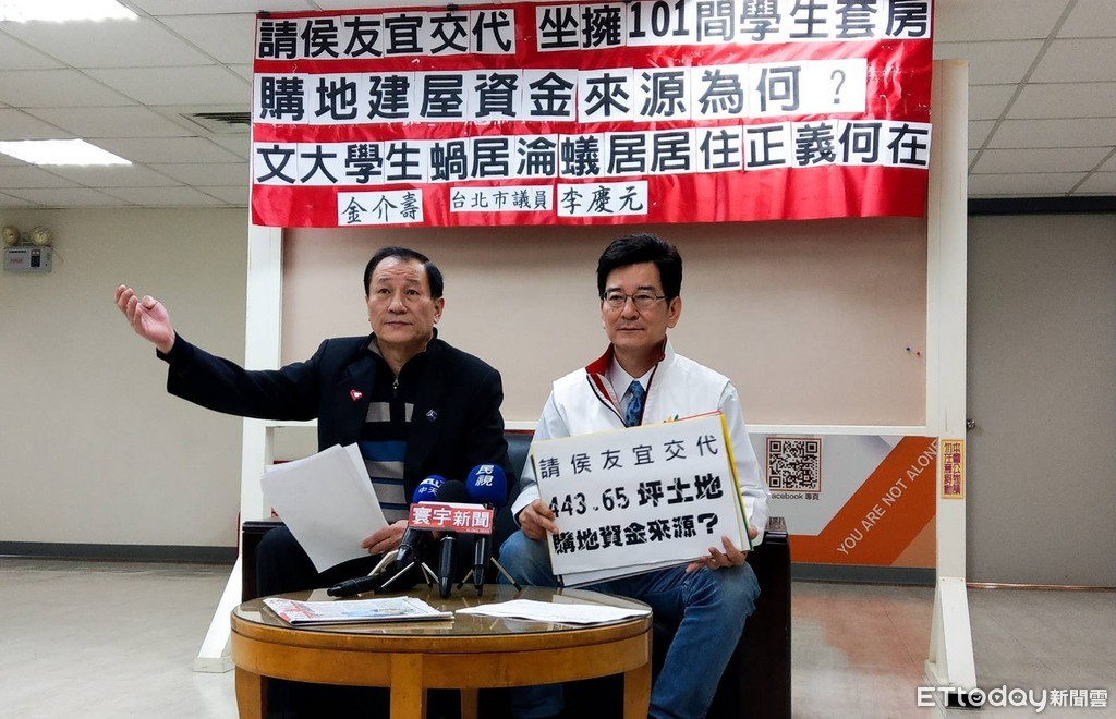 看似國民黨穩操勝券的2018新北市長選舉,如今內部也出現分裂。前新北市議員金介壽17日與台北市議員李慶元一同召開記者會,再掀新北市副市長侯友宜坐擁101間學生套房,但購地和建屋資金來源卻不明,痛陳侯官做太大沒人敢辦他。對此,侯友宜則回應,「我侯友宜像是一個貪污的人嗎?用這種選舉的手段,讓人家深惡痛絕。」