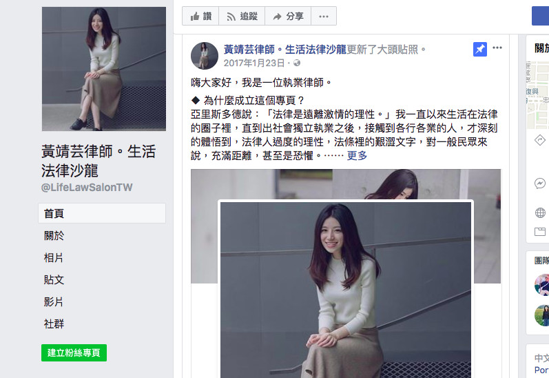 ▲律師黃靖芸遭補教名師指稱「酒店化」氣得提告。(圖/翻攝自黃靖芸律師。生活法律沙龍臉書)