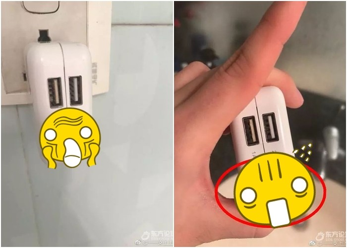 ▲充電器浴室連插兩個月,女學生洗完澡發現上頭黑色部分很奇怪。(圖/翻攝自網易/杭州交通918)