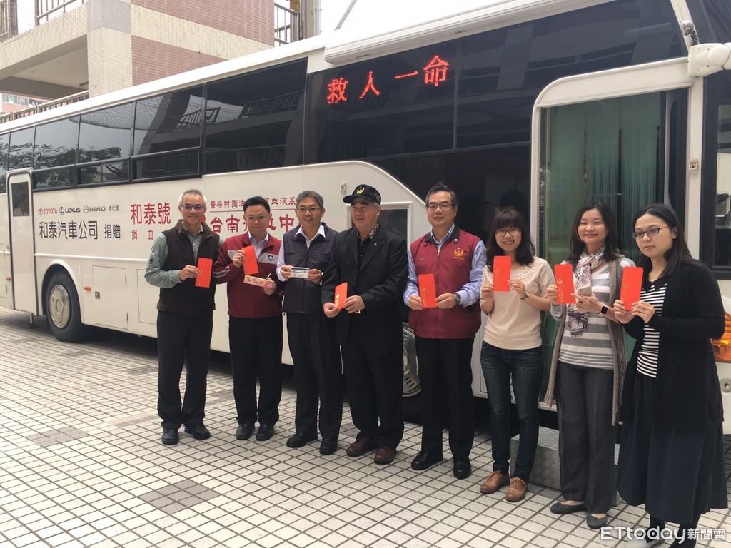 ▲台南市消防局副局長楊宗林(右四)與義消總隊長呂榮利(左四)號召號捐血。(圖/消防局提供)
