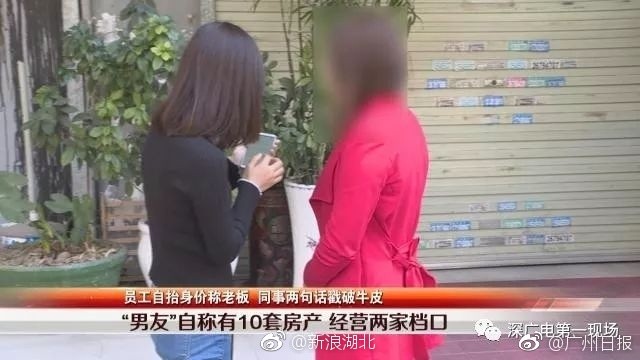 盧女透露,謝男聲稱是大老闆,在深圳和廣州都有一家批發名產店鋪,更有10套房產,但平時並不特別大方,而且還曾叫她幫忙付信用卡費。到了店鋪詢問後,同事卻驚訝的表示,謝男根本不是老闆,只是一名職員,擔任採購的職務,上個月離職了,平時一個月薪水才3、4000元人民幣(約台幣13500至18000元),怎麼可能買那麼多資產,「肯定吹牛啊」。