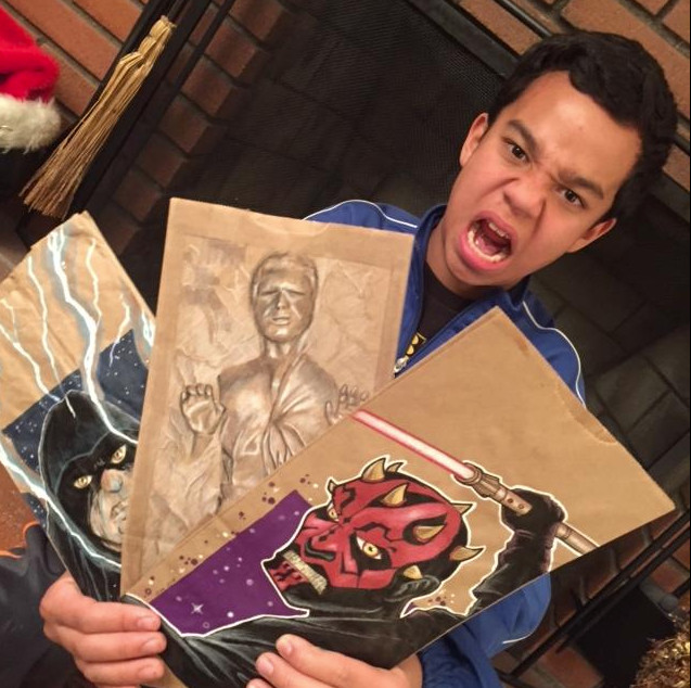 加州暖爸多明尼克(Dominick Cabalo)為了幫助個性內向、害羞的兒子尼可拉斯(Nicholas Cabalo)製造機會交新朋友,每天在兒子裝午餐的牛皮紙袋上作畫。尼可拉斯每天平均用1個小時的時間幫兒子在紙袋上畫上不同的英雄人物、電影角色、小動物等,再讓兒子帶到學校,藉著紙袋上的漫威英雄人物製造話題,讓兒子多一個機會跟同學們「破冰」。多明尼克暖心的說,「這樣做至少可以讓他(兒子)有幾分鐘時間成為主角。」