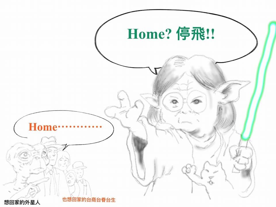 經典電影中的E.T總是手指著天空,想要回家(Phone Home);連勝文批評,現實生活中的English Tsai(蔡英文)面對503 航線的爭議,卻是莫名奇妙去懲罰大陸台商及台生,不同意春節加班機,不讓台灣人回家!比較起來,電影中的E.T. 似乎更有人性!但其實這是蔡英文想對大陸耍狠,卻搞錯了對象!