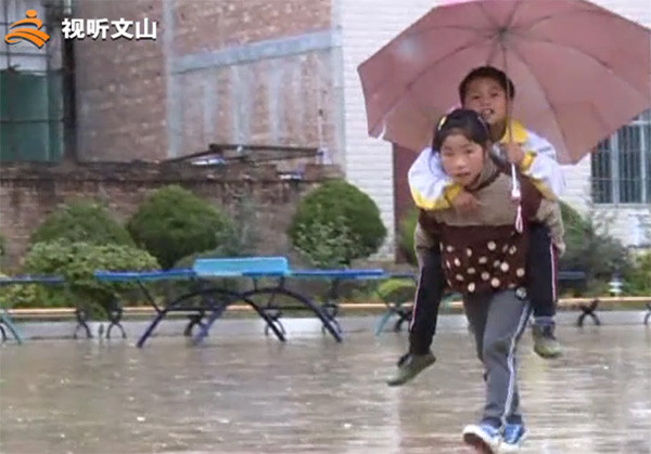 雲南文山壯族苗族自治州廣南縣9歲的周定雙就讀當地小學,她有個12歲的哥哥周定富從小就患有殘疾,她為了讓哥哥能夠專心上學,自願向父母要求當哥哥的「小拐杖」,每天從學校宿舍背哥哥500公尺到教室,不論晴天下雨,兄弟倆都準時到校。