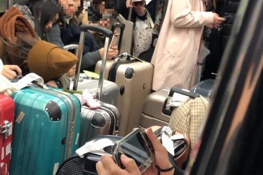 ▲台客10行李箱塞住…被日本電車長廣播!(圖/翻攝日本打工度假就職專家)