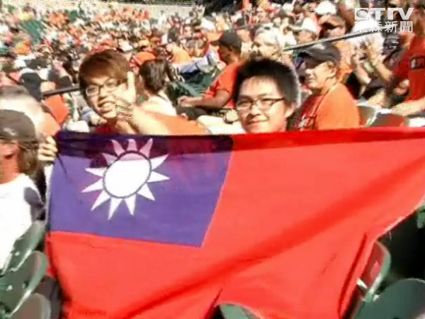 ▲市府大樓、舊市議會等處外牆,懸掛「國慶日向國旗致敬,釣魚台是中華民國的!」巨幅海報。(圖/東森新聞)