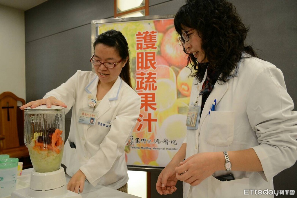 ▲台東馬偕醫院蘇瑞庭營養師表示現代人生活較忙碌,外食族常忽略蔬果的攝取,所以若能在早餐增加一杯護眼蔬果汁 既簡單又可達均衡飲食之要求。(圖/台東馬偕醫院提供 下同)