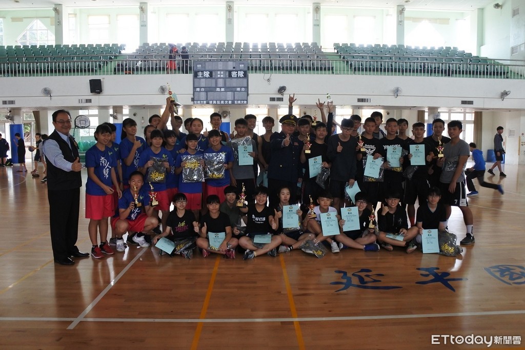台南市警五分局,為避免學子在假期涉足不當場所,加強少年保護與預防犯罪宣導,結合六信高中、衛生局,於21日上午8時30分,在延平國中室內籃球場,舉辦「3對3籃球賽」活動,吸引近82支隊伍,246名青少年朋友參加,現場充滿年輕朝氣與活力(圖/警方提供)。