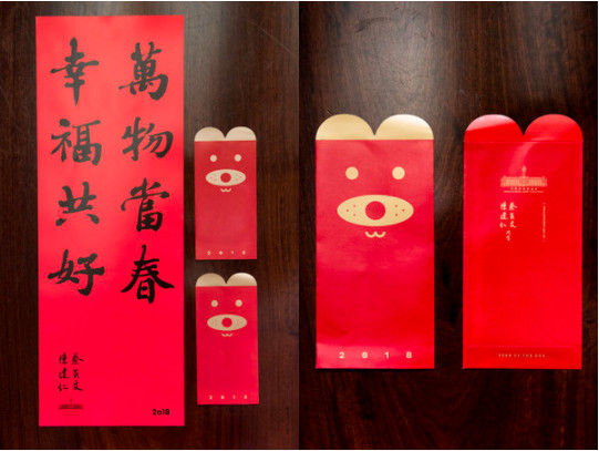 另外,在新年的紅包袋方面,林鶴明表示,設計是由紅包袋則由新銳設計師牛子齊以及卵形設計負責人葉忠宜共同設計,透過「狗」的意象來呈現。