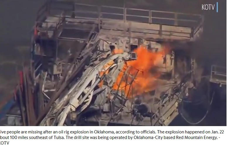 奧克拉荷馬州委員會發言人馬特絲金那(Matt Skinner)表示,事發鑽井平台是由紅山能源公司(Red Mountain)負責營運,該公司負責管理該州的石油和天然氣,目前起火原因尚不清楚,當地另一間鑽井平台營運商發出聲明證實,仍有部分員工下落不明。