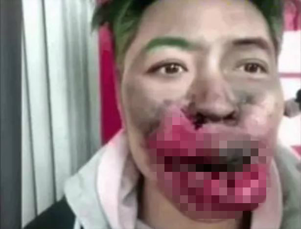 一名鮮肉直播主為了取得更高的點擊量,二話不說把鞭炮放進嘴裡,對著鏡頭挑眉毛後點火,不用幾秒的時間嘴巴瞬間炸爛,雙唇腫到佔據半張臉,就算張開嘴說話也看不見牙齒,而上面的肉被炸到鮮血直流,鼻子上沾染黑色的灰燼,頭髮則是被炸到燒焦,整張臉只剩下眼睛沒被鞭炮攻擊到。