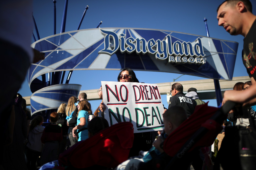 由於民主黨與共和黨始終無法在「追夢人計畫」的臨時預算上達成共識,因此15名夢想家聚集在迪士尼樂園大門前的南港大道(South Harbor Boulevard),阻擋巴士進出迪士尼樂園,但很快執法單位便將他們驅離,隨後他們又聚集在附近的人行道,邊高喊「沒有夢想!沒有協議!」邊舉著標語表達抗議。