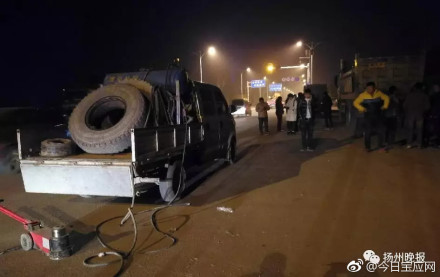 江蘇揚州市22日發生一宗可怕意外,一名修車工人正在為砂石車補胎時,輪胎突然發生爆炸,一瞬間把他炸飛數公尺外,連附近地上都是他衣服被炸爛的棉絮,被送到醫院搶救無效後身亡。