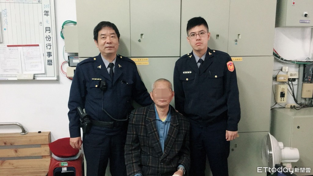 ▲市警二分局巡邏員警張瑞欽、王威雲,幫助失智老翁平安與家屬重逢。(圖/記者林悅翻攝)