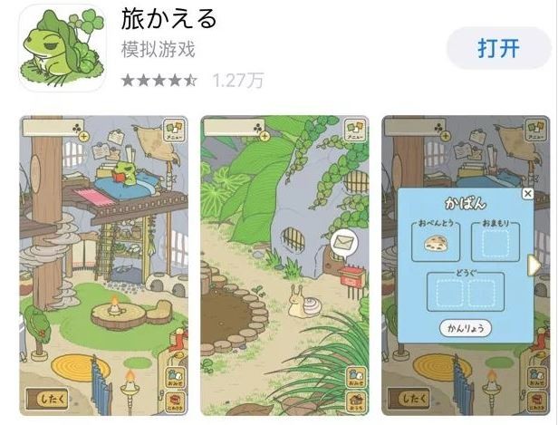 《旅かえる(旅行青蛙)》21日登上了APP Store免費遊戲榜第一名,在Taptap上的下載量超過100萬次,微信指數超過1000萬。遊戲中,只有庭院和房子兩個場景,玩家除了收割幸運草、準備便當外,幾乎不需要花費任何時間和金錢,唯一的交流也只有蛙蛙旅行寄回來的照片。