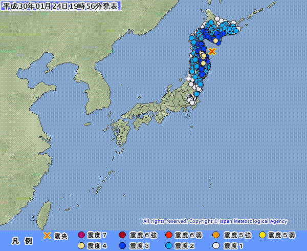日本青森縣東部外海當地時間24日19時51分(台灣時間18時51分)發生規模6.2地震,震央深度30公里,日本東北地區和北海道感覺到明顯晃動。目前尚不清楚是否出現災情。