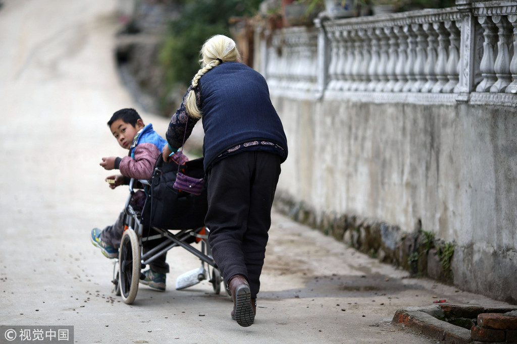廣西桂林灌陽縣黃關鎮代竹源村有一名9歲腦性麻痺的孩子蔣昊文,他母親改嫁,父親則外出打工,每天都由76歲的奶奶史玉英用破舊的輪椅,被推著往返學校8趟,每趟3公里,一共是24公里。老奶奶說道,「難道人活在世上,親情不是最重要的嗎?難道做人不應該貴在堅持嗎?」