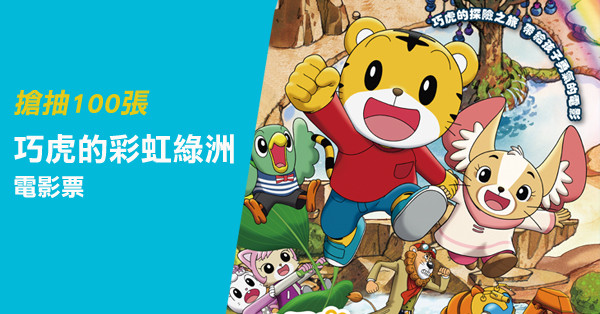 ◎得獎獎項:《巧虎的彩虹綠洲》電影交換券2張,共100張,數量有限 !