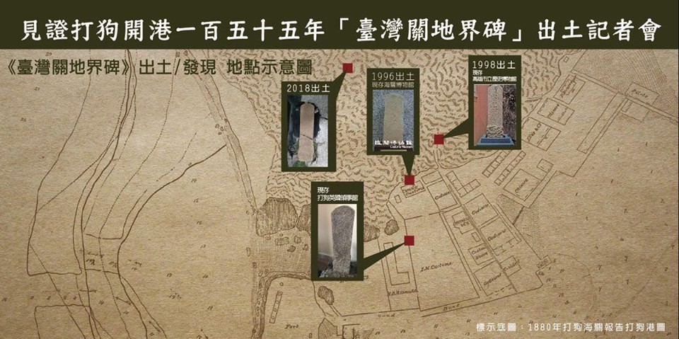 一是1996年海關人員於打狗英國領事館北側坡發現,目前由台北海關博物館典藏。二為1998年哨船頭福德宮因進行巷道拓寬工程開挖路基時被發現,目前收存於高雄市立歷史博物館。三則位於海關與英國領事館邊界,現展示於打狗英國領事館內。