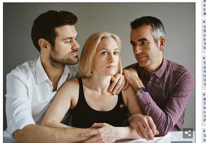 ▲英國女作家卡西迪(中)談論自己為何擁抱多邊戀。左為其男友,右邊則是她的丈夫。(圖/取自每日郵報)