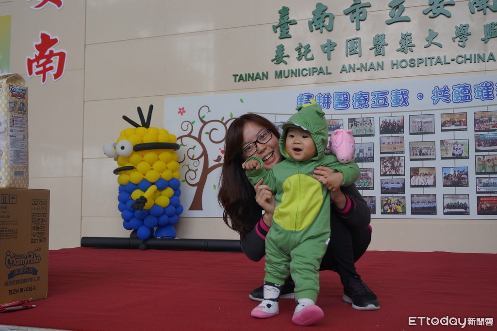 ▲「Baby Fashion Show」寶寶走秀競賽活動,第1名小恐龍親子檔。(圖/安南醫院提供)