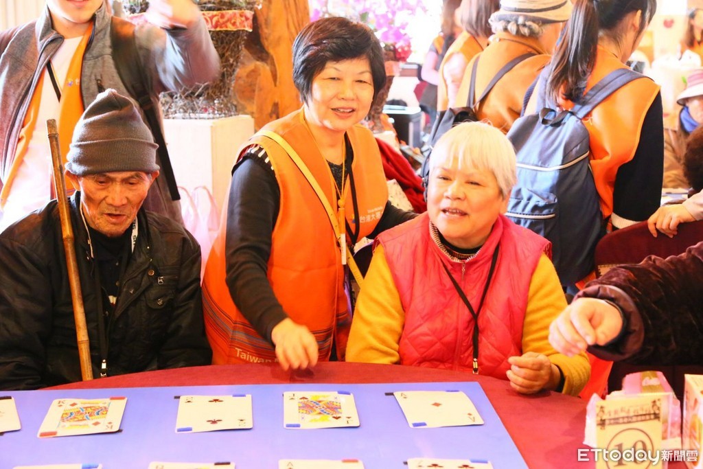 用餐過後,麥子與台灣大為長輩設計了有趣的闖關活動,不同於一般活動是由志工陪同長輩逐一闖關,這次為顧及部份使用輪椅的年長者,因此改變進行方式,長者們僅需待在原桌,由各關關主率隊巡迴各桌,讓每位長輩都有機會參與遊戲。張善政與夫人賢伉儷更親自擔任「我欲甲你攬牢牢」的關主,在示範遊戲時夫妻同心展現絕佳默契,和長輩一起趣味互動。
