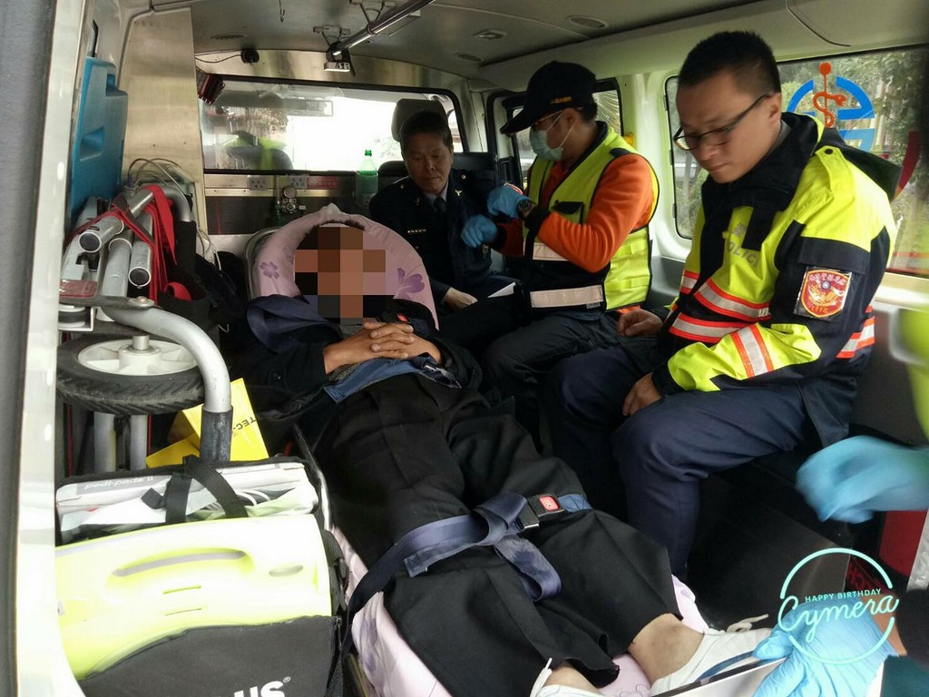 ▲警方將吳男送醫。(圖/苗栗警分局)
