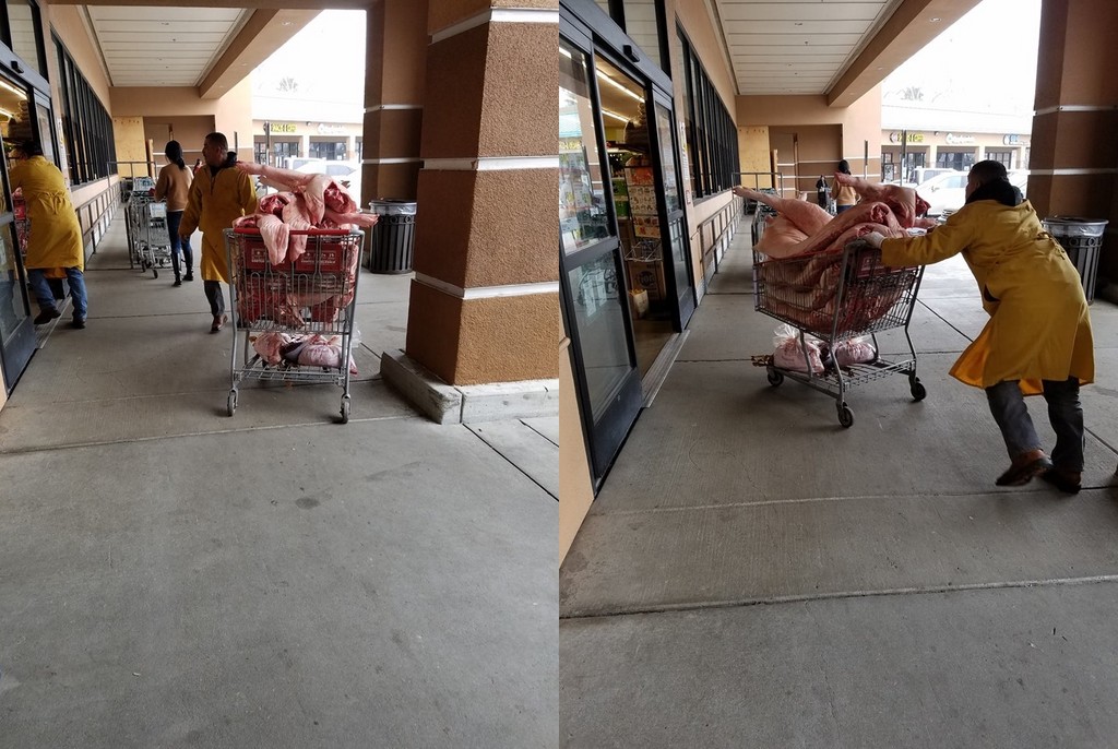 ▲肉品廠商推著生肉進超市。(圖/Loretta Seto臉書)