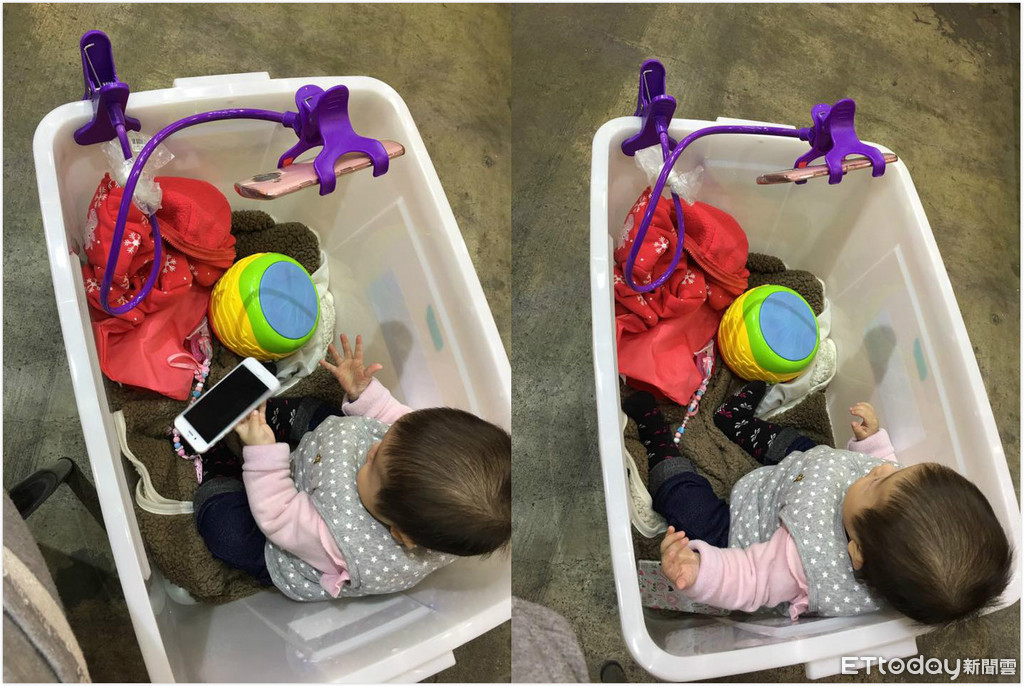Wunjing He苦笑說,女兒很黏,願意待在桶子內的時間大概30-40分鐘,半天時間大概只願意坐2-3次,剩餘都是她背在身上,「女兒手上的是展示機(無法使用的那種),成了她的玩具;懶人夾上則播放yoyo連續唱歌跳舞,只有特定幾首歌她會抬頭看,然後大概都看1-2分鐘就不看了。」