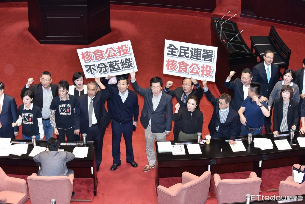 ▲國民黨立委群起抗議核食進口。(圖/記者季相儒攝)