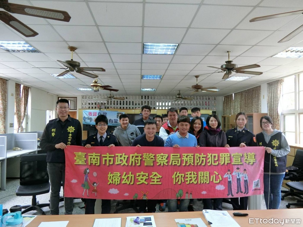 ▲台南市警婦幼警察隊,受邀至台南市鹽水區鹽水國小所舉辦軟式網球協會107年度A級教練講習會,對於參與培訓的教練們進行「婦幼人身安全宣導暨預防犯罪宣導」。(圖/警方提供)