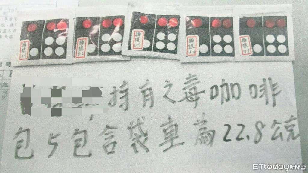 ▲台南市警五分局警方查獲毒咖啡包一批。(圖/記者林悅翻攝)
