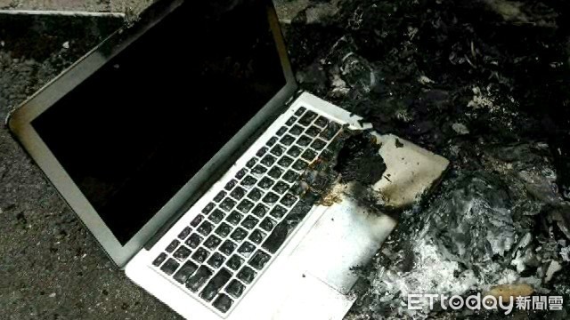▲林仲桓的筆電被肇事者燒毀。(圖/記者張曼蘋攝)