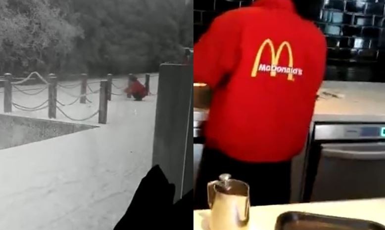 一名楊先生29日前往湖南的「麥當勞天子山賀龍公園店」用餐,當時,他點了份熱牛奶與蛋糕,卻看到工作人員4次到戶外挖雪,隨後倒進操作台的桶內,讓他嚇得錄下影片為證,「就算冰凍封路沒水,也不能隨便在外面挖雪來給顧客用。」事後麥當勞澄清,這件事是誤會,他們非常關心顧客的身體狀況。