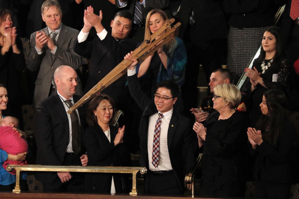 首次發表國情咨文的美國總統川普(Donald Trump)將議題聚焦「重建核武」,提及北韓政權很快就會擁有攻打美國本土的核武器,目前美國正採取強力施壓制裁北韓。不過,在這一席強硬談話當中,川普也打出溫情牌,邀請脫北者吉晟浩(Ji Seong-ho)參加國情咨文。
