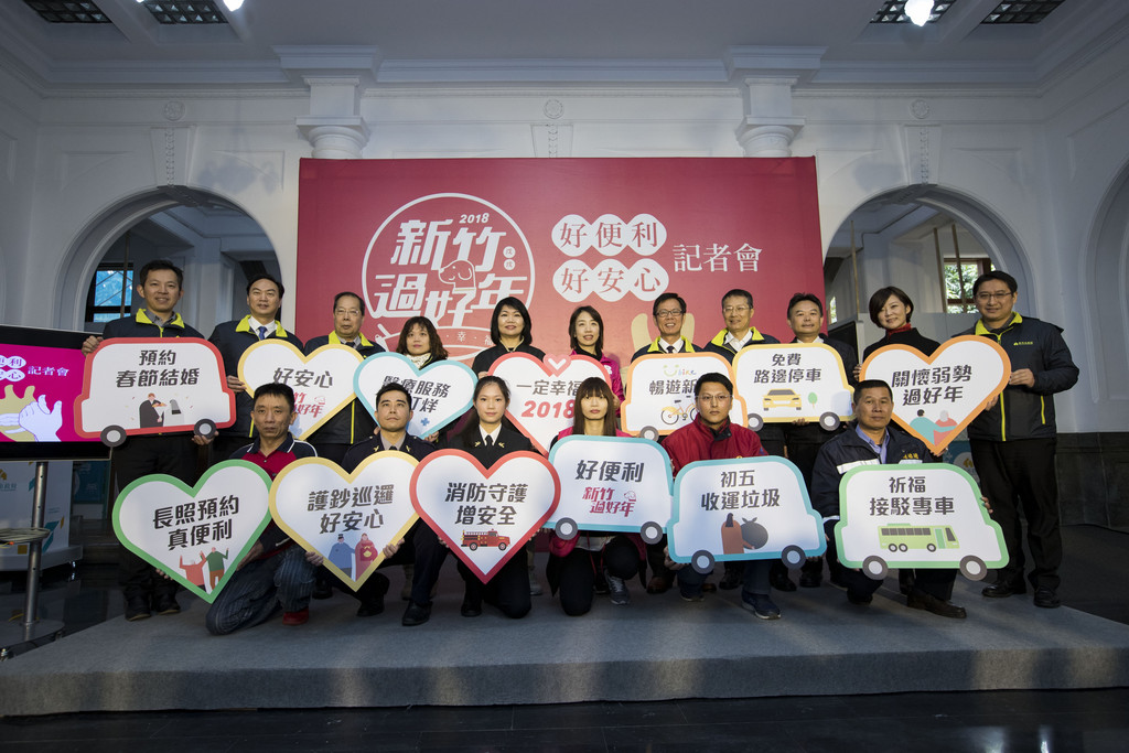 迎接農曆春節,新竹市政府整合各局處春節期間便民服務及活動,今(31)舉行「2018新竹過好年-好便利、好安心」記者會,包括環保、交通、戶政、消防、警察、衛生醫療、社福工作及1999服務專線等,通通不打烊,市長林智堅表示,新竹市年前有大型家具免費清運措施,春節期間也規劃祈福接駁專車、YouBike春節不打烊等服務,讓市民輕鬆過好年。