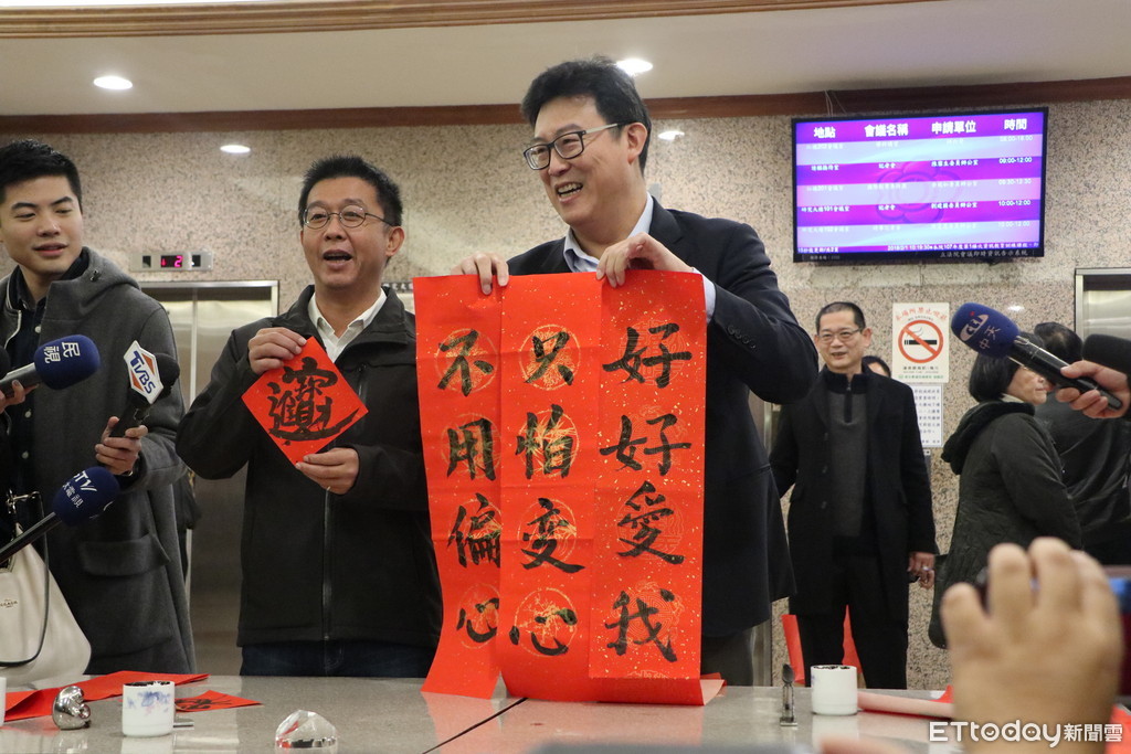 ▲姚文智送上春聯給蔡英文。(圖/姚文智辦公室提供,下同)