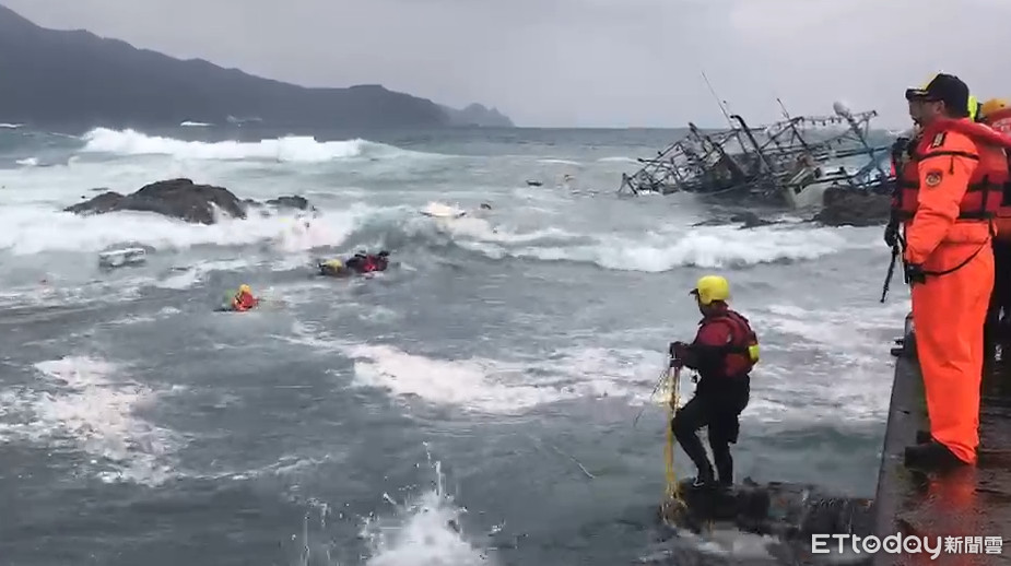 36噸漁船「長樂66號」今(2日)早7時許在新北市貢寮近海擱淺,並在10時許因側浪襲擊翻覆,導致船上包含船長共7人落海,警消及岸巡人員獲報出動數十人到場,冒著極低溫下水救援,所幸最後船上7人都平安獲救。
