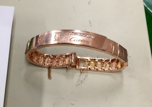 警方表示,這些經過偽造加工後的金飾主要流通於釜山鎮區的銀樓街。嫌犯將金子加工後仿製成精品的外貌,再以5到6倍的價錢轉手,例如原價120萬韓幣(3萬5千)8錢重的18K金手鍊,嫌犯再加上卡地亞的商標後,就能以6倍以上的價格轉手至銀樓。