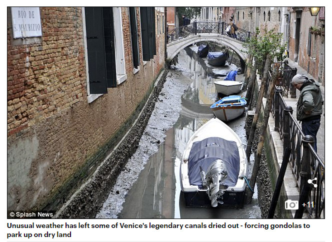 ▼據《每日郵報》報導,威尼斯河道乾涸的現象是「超級藍血月」所造成的。