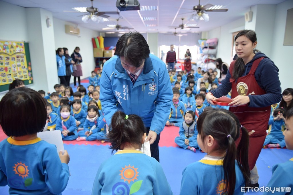 ▲花蓮市長魏嘉賢前往民勤幼兒園主持「書箱宅急便」頒獎典禮,這是該活動舉辦頒獎典禮7年以來,首次移師至學校辦理,有119位閱讀心得製作表現優異的學生接受表揚。(圖/花蓮市公所提供 下同)