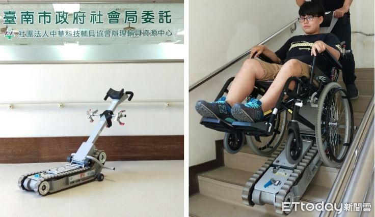 ▲社會局示範爬梯機操作。示意圖,與本案人物、事件無關。(圖/資料照/台南市政府社會局提供)