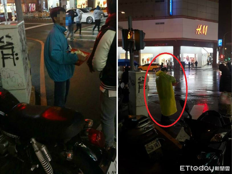 張姓網友在臉書社團「大里人聊天室」PO出多組照片,畫面只見寒冷夜晚裡,一名身穿藍色高領外套、寬牛仔褲的弟弟正拿著裝有玉蘭花的紅色塑膠盒,站在十字路口轉角變電箱前等著客人上門;而另一張照片中,天空下起毛毛雨,他只穿著薄薄輕便雨衣,不管路面有多濕滑,他依然直挺腰身拿著籃子站在轉角處,等著客人上前購買幾朵,好讓他能養家。