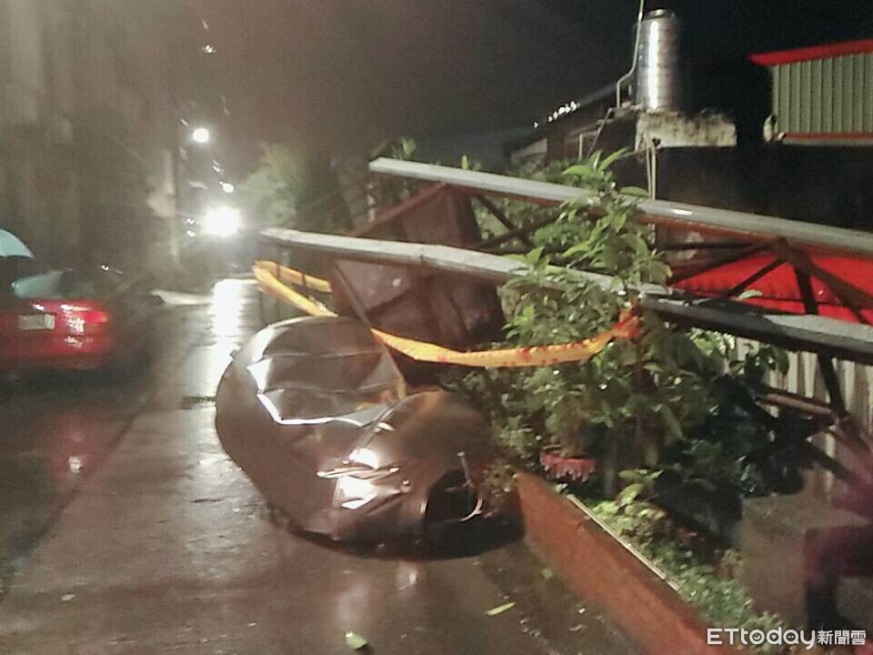 ▲新北市鶯歌一2噸重的水塔因地震整座倒下,所幸無人傷亡。(圖/記者楊佩琪翻攝)