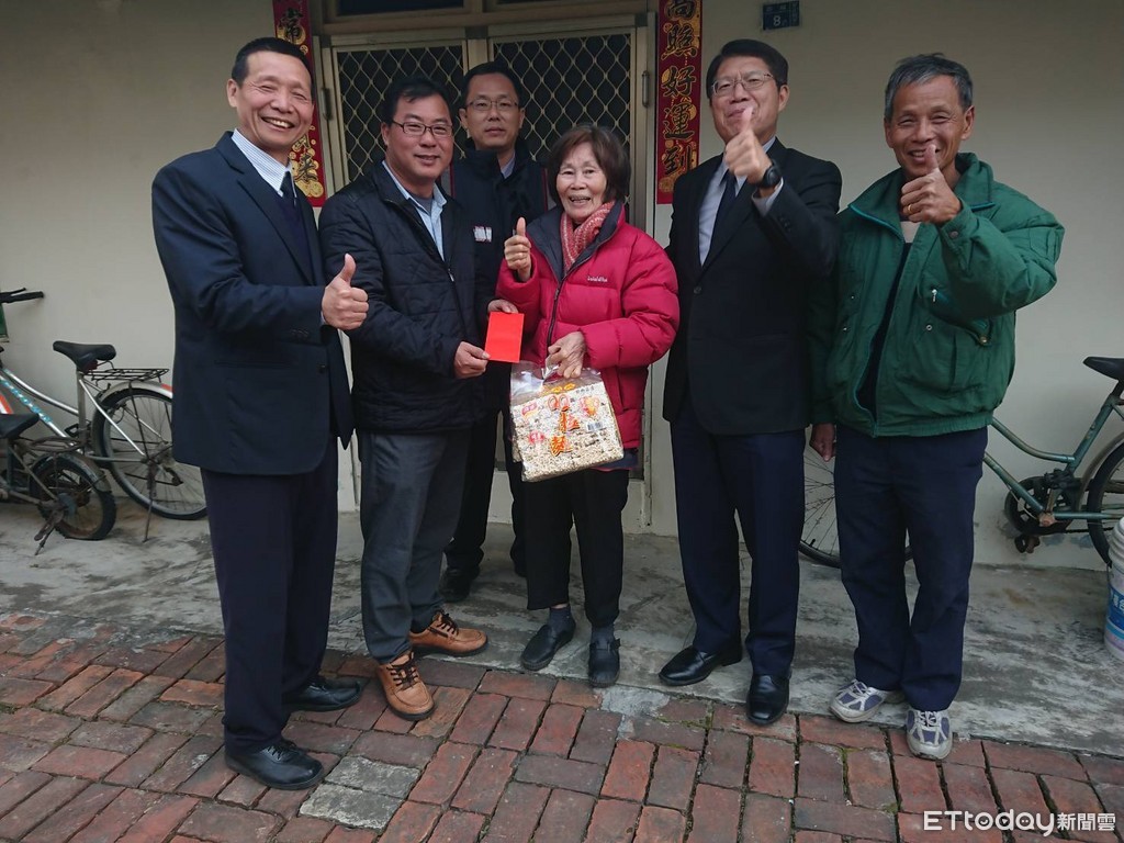 台南市善化警分局長許坤田、防治組長王清松,與台南市政府顧問宋俊明先生、光文里、什乃里、蘇林里3位里長,共同發起「關懷獨居老人」活動,6日下午4時許分別前往善化、安定地區贈送物資、紅包分送給轄區獨居老人。