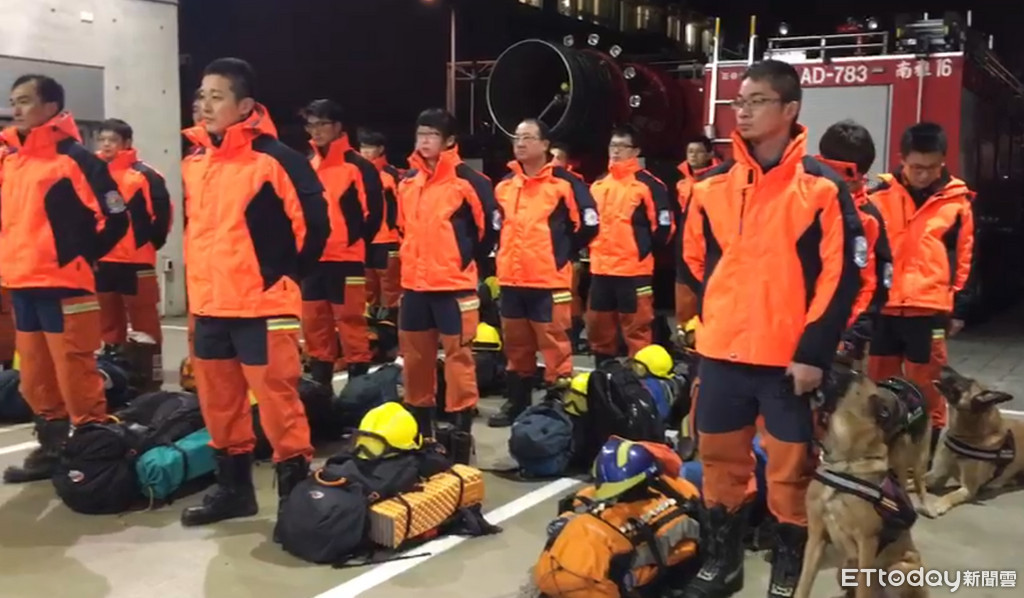 ▲新北快搜部隊深夜集結,36人3犬準備挺進花蓮支援救災。(圖/記者林煒傑翻攝)