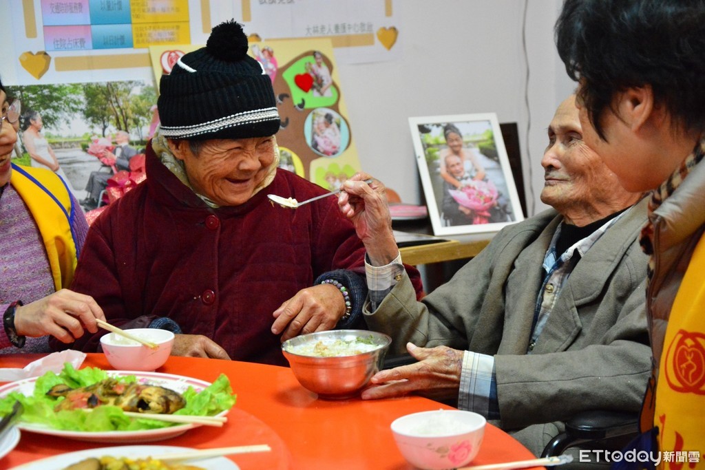 ▲黃元成爺爺(右)與黃李金蘭奶奶(左)分隔兩地,透過基金會終於能一起吃團圓飯。(圖/弘道老人福利基金會提供,下同)